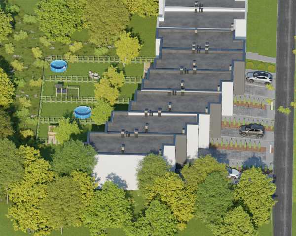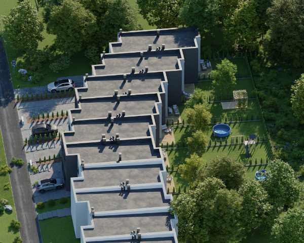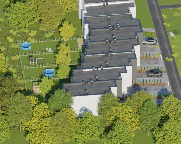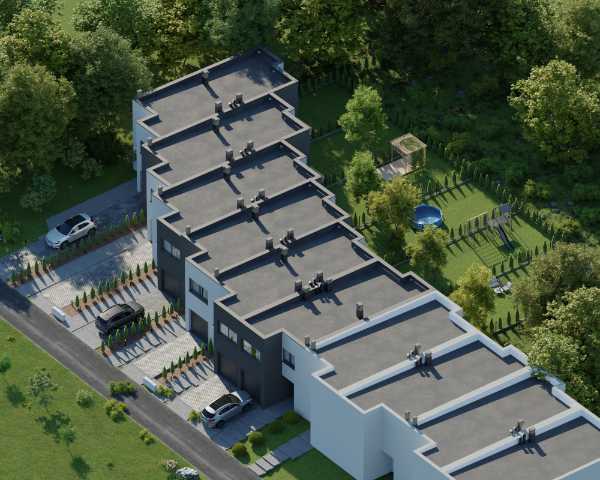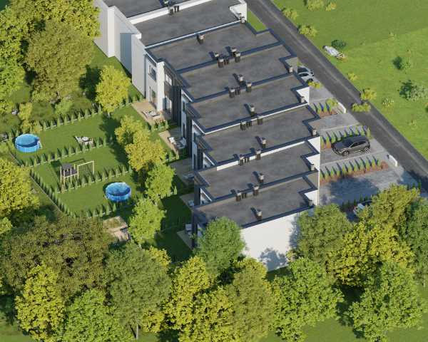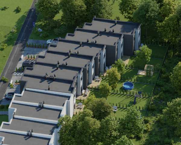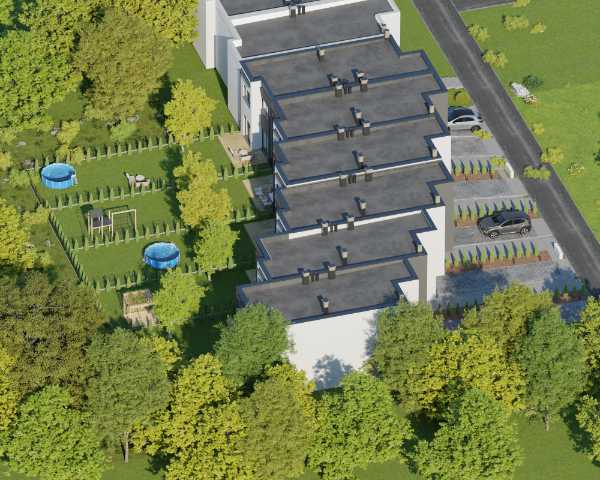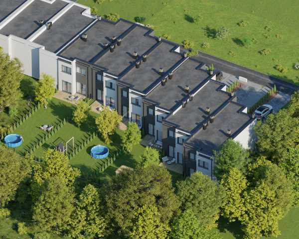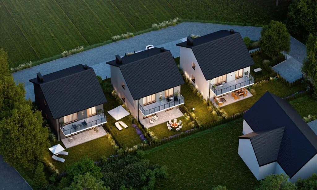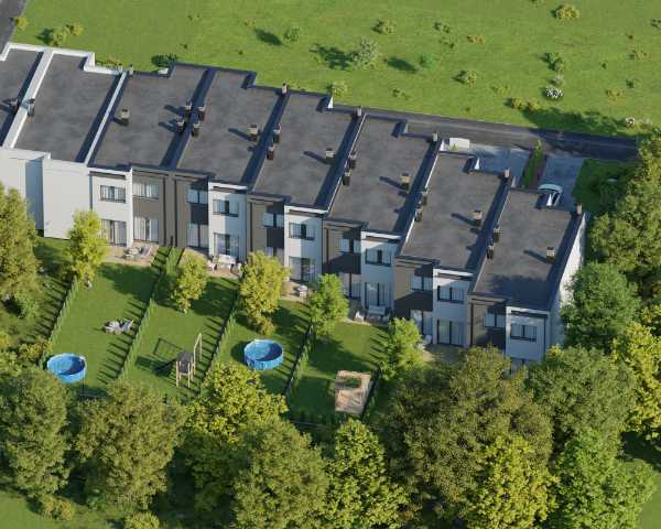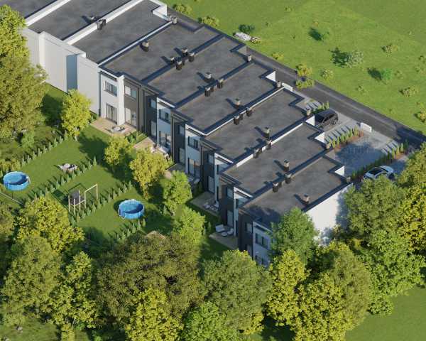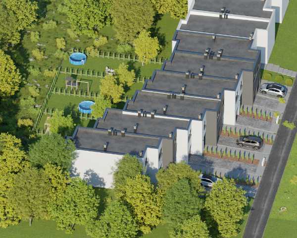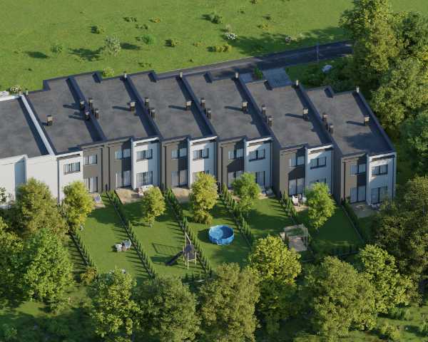 Na zewnątrz czeka na Ciebie prywatny ogródek z tarasem, gdzie zrelaksujesz się po pracy albo wypijesz kawę w weekendowy poranek. Do każdego lokalu przynależą miejsca postojowe, a teren wokół jest już gotowy do użytku – z ogrodzeniem, podjazdem i chodnikami w cenie. Dodatkowo możesz zainstalować klimatyzację, fotowoltaikę, rolety czy nawet system automatycznego nawadniania ogrodu. Co ważne, domy nie mają części wspólnych, więc nie płacisz za nic, z czego nie korzystasz. Tutaj od początku mieszkasz na własnych zasadach.